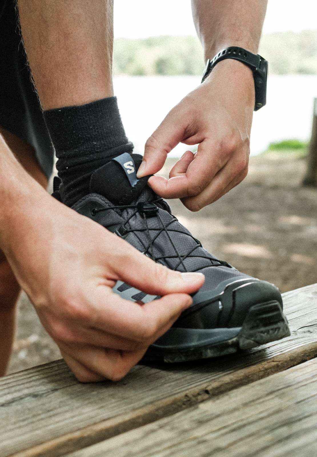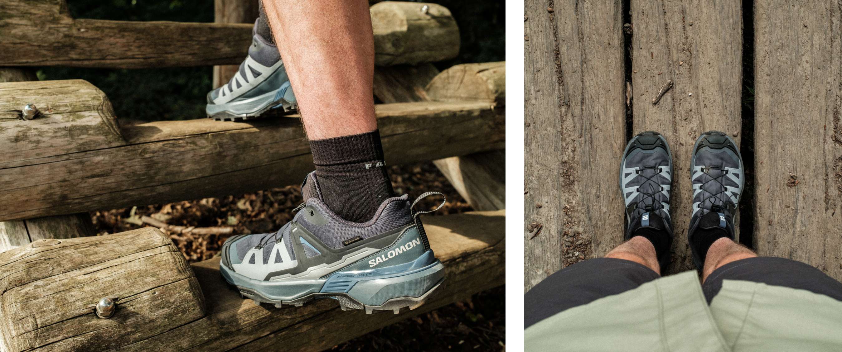 Wouter testte de Salomon X Ultra 360 GTX tijdens een negen dagen durende kampeervakantie in de Loirestreek. Daar droeg hij ze zowel op bospaden en grindwegen als tijdens korte stukjes over rotsen. Ook op de camping, in de auto en zelfs tijdens uitstapjes naar dorpjes kwamen ze van pas. Terug thuis trok hij ermee het Hageland in, waar hij ze op heuvelachtig en onverhard terrein verder probeerde.
