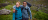 Twee beelden: vrouw kijkt om in blauwe jas tijdens een wandeling; twee wandelaars stappen over rotsachtig terrein in een groene bergvallei.